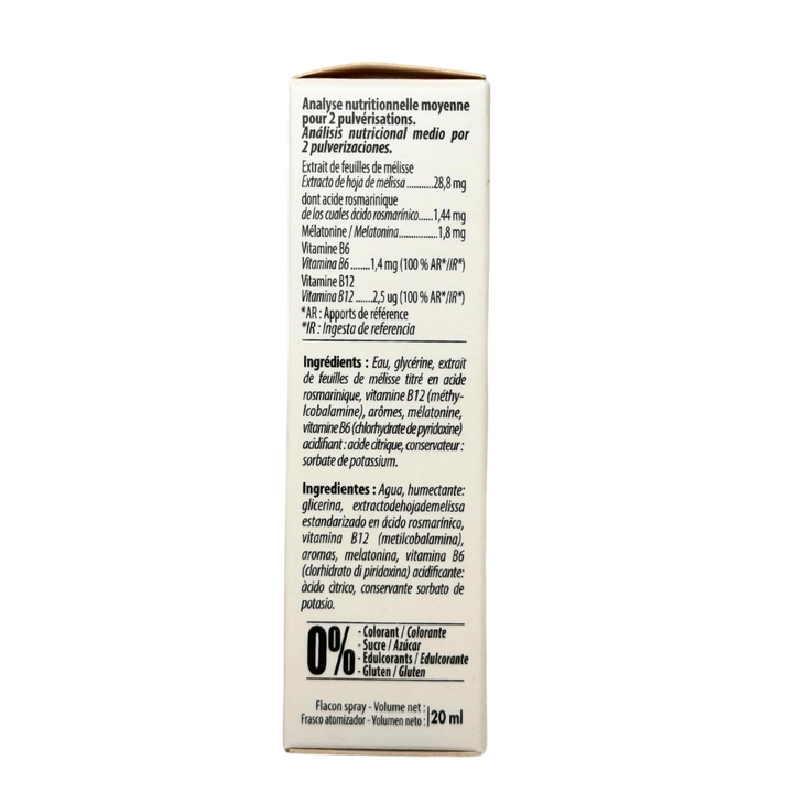 Somny Spray es un complemento alimenticio en spray que combina melatonina, toronjil, y vitaminas B6 y B12 para ayudarte a conciliar el sueño. Ideal para combatir el desfase horario, este spray sublingual de rápida absorción también reduce la fatiga.